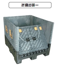塑料折疊式卡板箱是為了在空箱的時減少倉儲體積及物流運輸成本而設計的物流產品,折疊卡板箱在繼承了封閉卡板箱產品的承載(動載1T;靜載4T)的一貫設計,材料HDPE通過發泡處理抗沖擊性強。大型折疊箱四周都有大小不同的四塊側板和托盤式樣的底座及側門上設計的取貨小門等共二十一個零部件組裝而成。產品技術成分較高,同時采用十二副模具制造,為美國福特汽車指定外貿產品。