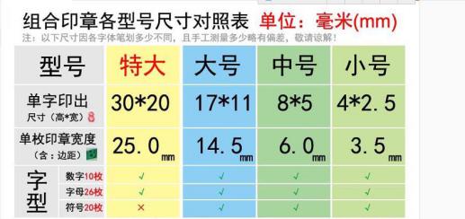 有一部分客戶需要的不僅僅是logo,而是需要順序印刷的編碼,例如“shuanglong-001”一直到“shuanglong-1000”這樣的話使用絲網(wǎng)印刷就明顯的不行了,我們不可能去做一千個絲網(wǎng)版。這種情況下我們一般使用活字碼人工進(jìn)行印刷,費(fèi)事費(fèi)力,并且印刷出來不是特別的規(guī)范美觀。如果同行有更好的方法請不靈賜教,我的QQ:764234081。下圖就是我們常用的活字碼的尺寸表。